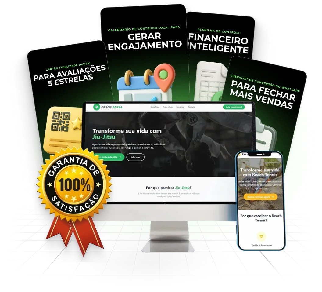 Você recebe um mini site profissional, SEO local configurado, botão de WhatsApp com chamada automática e quatro bônus exclusivos para impulsionar seu negócio.